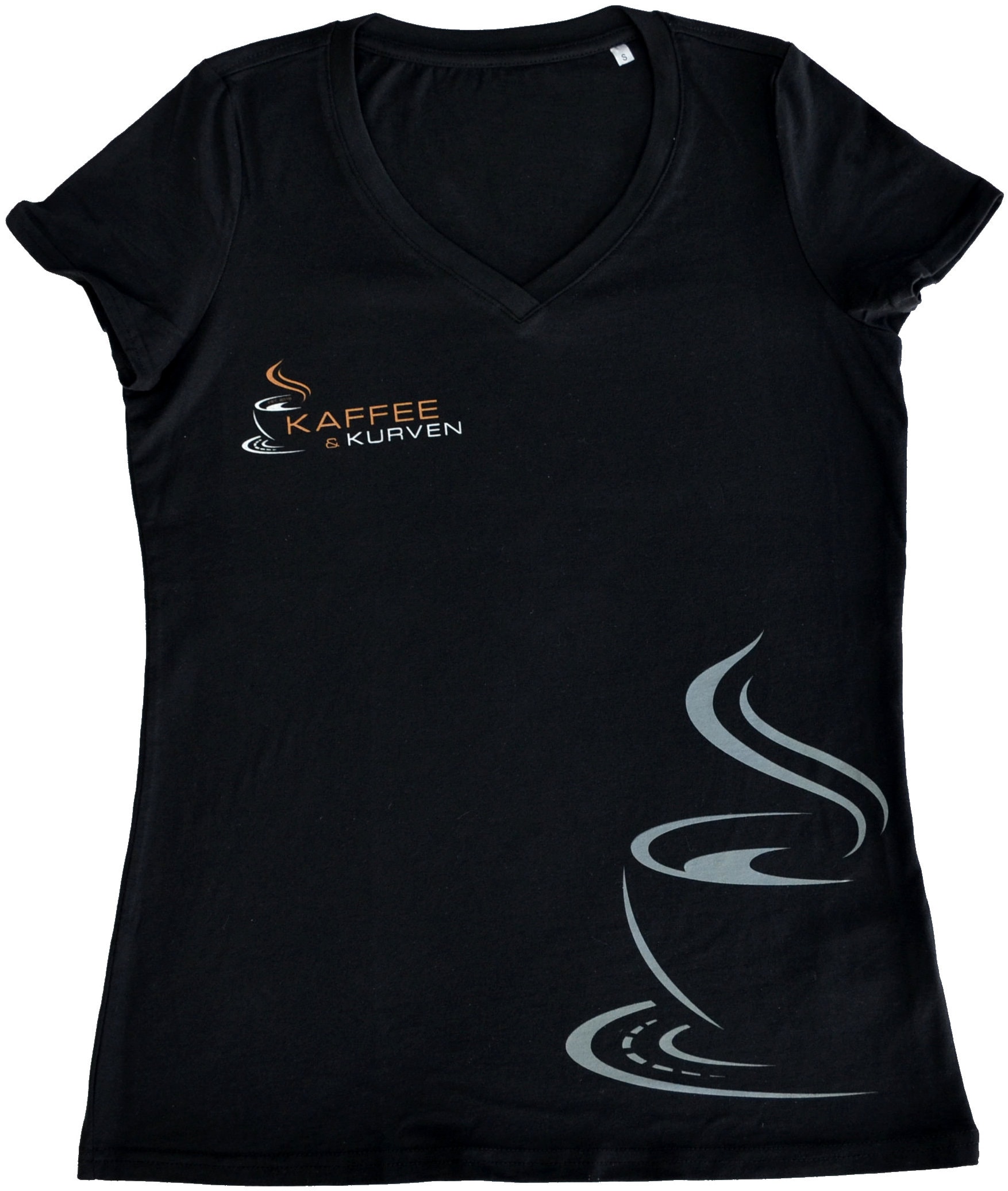 T-Shirt mit V-Ausschnitt für Damen mit Siebdruck an drei Stellen, Erhältlich in den Größen S bis L